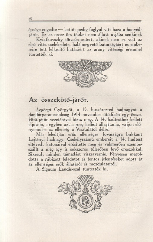A hadi levéltár anyagából válogatott honvéd anekdoták harmadik, magában is megálló kötete az orosz front vitézi jeleneteiből tesz közzé egy jelentősebb adagot a magyar harci szellem ébresztésére. Oldalszámozáson belül szövegközti könyvdíszekkel. A címkép hátoldalán és a címoldalon régi tulajdonosi bélyegzések.