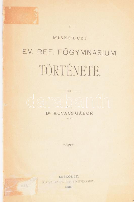 dr. Kovács Gábor: A miskolci ev. ref. főgimnázium története. Miskolc, 1885. Ev. ref. főgimn. 267p. Modern műbőr kötésben