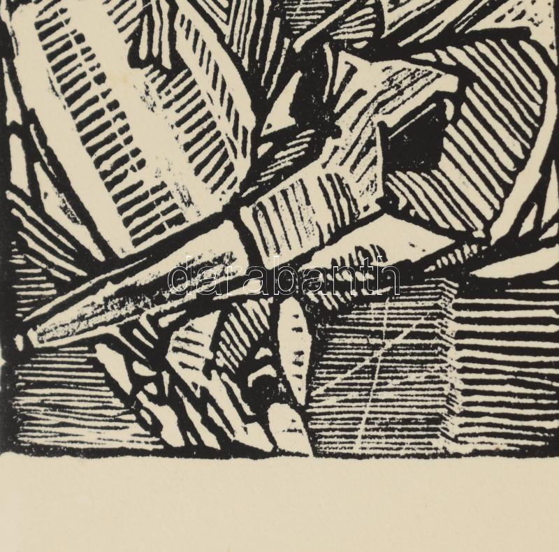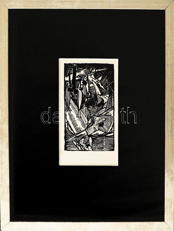 Kondor Béla (1931-1972): Illusztráció (Ernest Hemingway: Az öreg halász és a tenger c. kötethez). Fametszet, papír, jelzés nélkül, üvegezett fakeretben, 9,5×5,5 cm