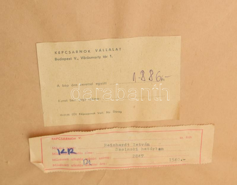 Reinhardt István (1936-): Szolnoki határban. Akvarell, papír, jelzett,... https://www.darabanth.com/de/484-Fernauktion/484.0/Gemalde-und-Grafiken/Gemalde-und-Grafiken~1500001/Reinhardt-Istvan-1936-Szolnoki-hatarban-Akvarell-papir-jelzett-hatoldalan-Kepcsarnok-V~II3257173