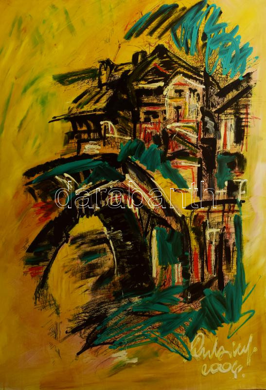 Rubint Ávrahám Péter (1958-): Emlék, 2004. Vegyes technika, nyomat, karton, jelzett, hátoldalán Rubint Ávrahám Péter autográf feliratával, 117,5×85 cm. KIZÁRÓLAG SZEMÉLYES ÁTVÉTEL, NEM POSTÁZZUK / ONLY PERSONAL COLLECTION IN OUR OFFICE!