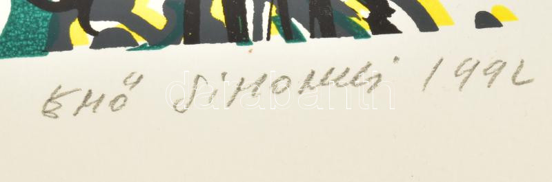 Beschreibung: Simonyi Emő (1943-): Álom zöldben, 1992. Szitanyomat, papír. Jelzett, számozott (22/40). 58x42 cm