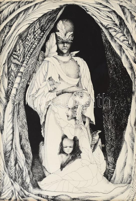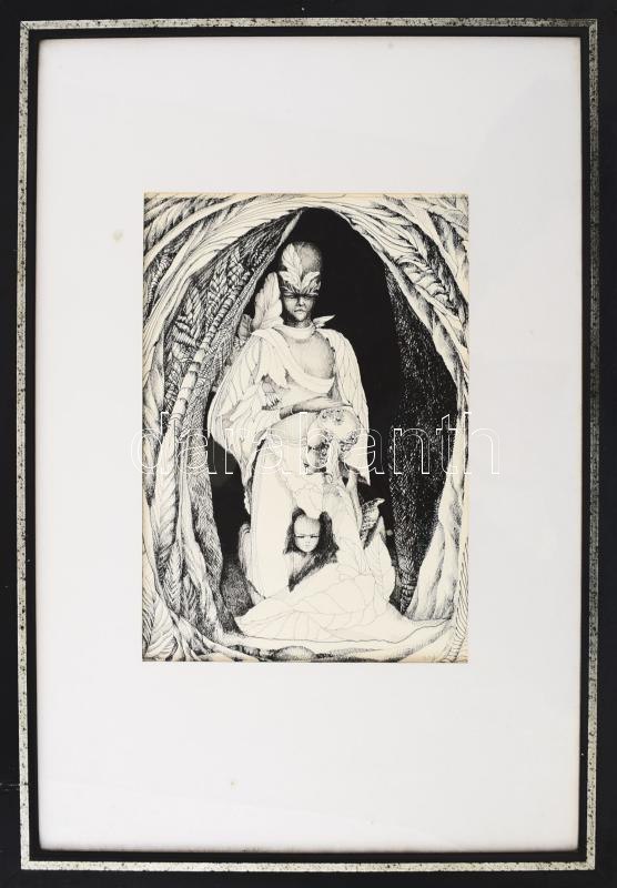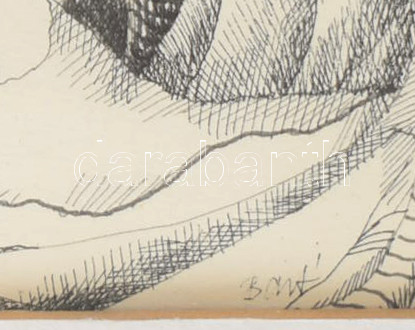 Bart (?) jelzéssel, XX. sz.vége/XXI sz. eleje: Az áldás barlangja. Tus, papír, üvegezett fakeretben, 25,5×18 cm