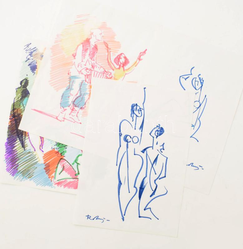 Beschreibung: Olvashatalan jelzéssel v. jelzés nélkül, 4 db mű: Alakok, aktok. Filctoll, papír. 30x21 cm