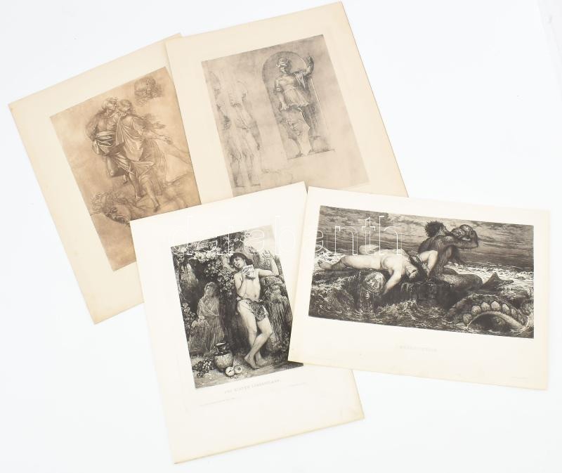 cca 1900-1910 5 db nagyméretű heliogravűr/metszet, jelzettek a metszeten, Druck & Verlag Gesellschaft f. vervielf. Kunst in Wien, vegyes állapotban, lapméret: 34x25 cm és 38x29 cm között