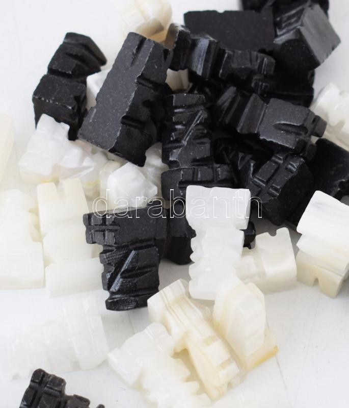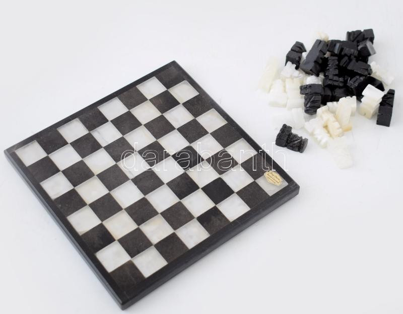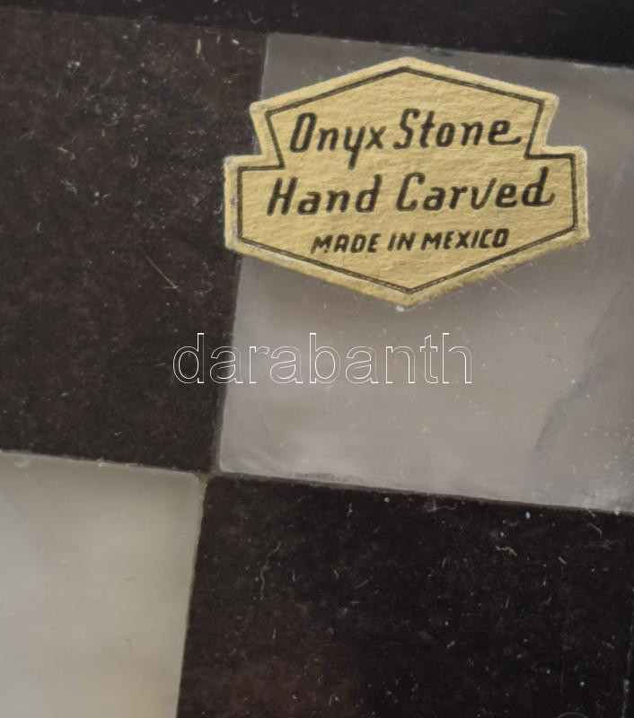 Beschreibung: Mexikói ónix sakk készlet, címkével jelzett, teljes, tábla 18,5x18,5 cm, jó állapotban.