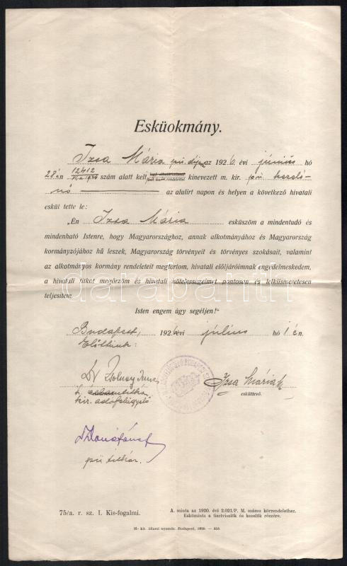 1914-1926 Budapest, helyhatósági bizonyítvány és esküokmány https://www.darabanth.com/de/484-Fernauktion/484.0/Kunst-Dokumente-andere-Sammelgebiete/Dokument~1500022/1914-1926-Budapest-helyhatosagi-bizonyitvany-es-eskuokmany~II3296255