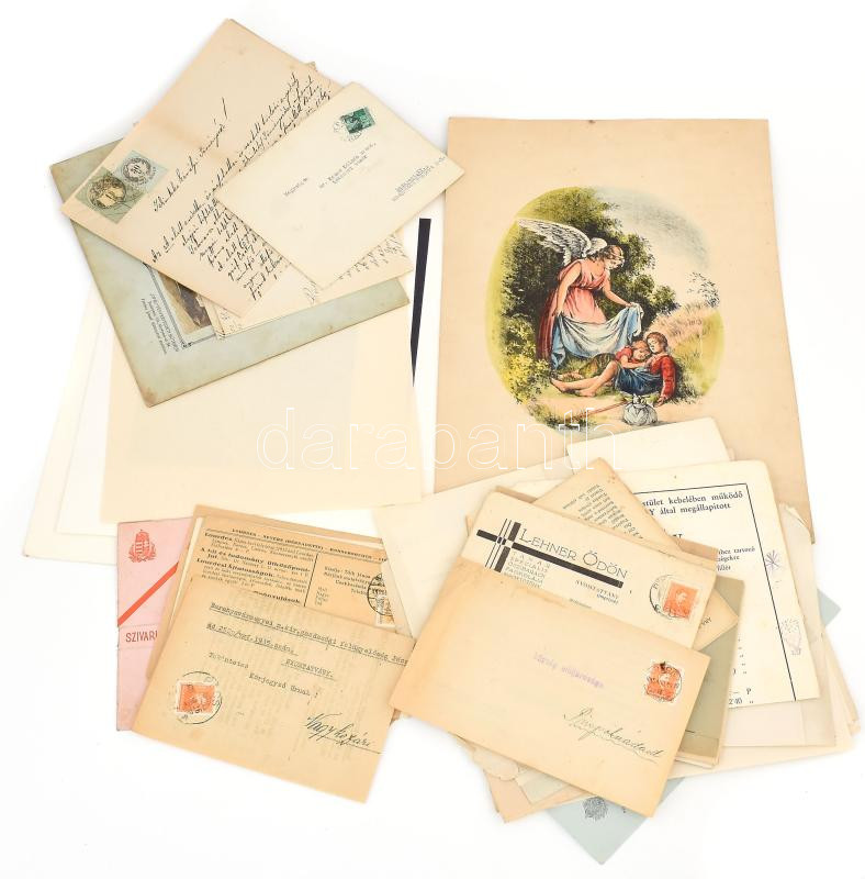 Beschreibung: Érdekes okmánygyűjtemény, benne fejléces levélpapírokkal, minisztériumi tisztviselők aláírásaival, fejléces levelezőlapokkal, reklám nyomtatványokkal