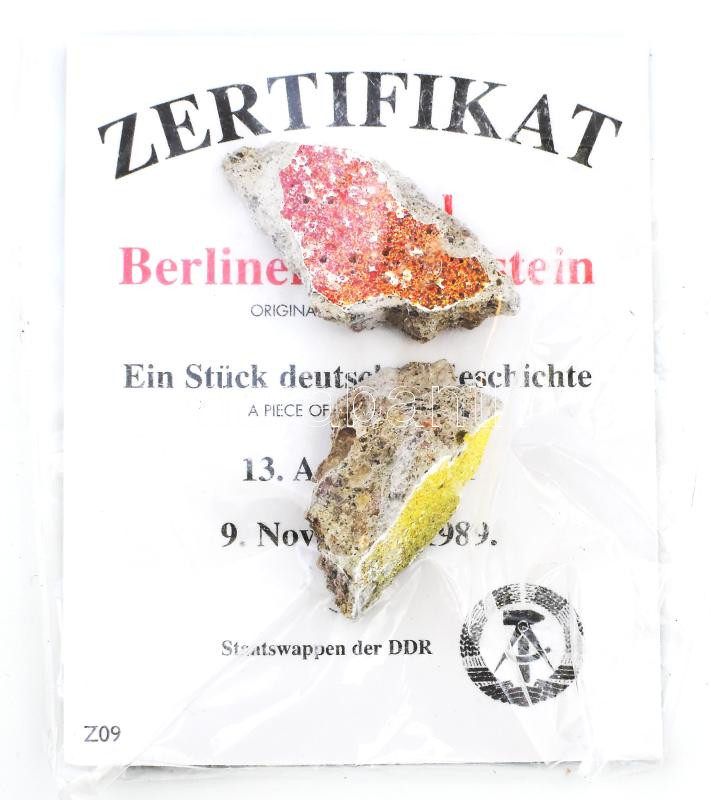 A Berlini fal egy darabja, tanúsítvánnyal + NDK zászló https://www.darabanth.com/de/484-Fernauktion/484.0/Kunst-Dokumente-andere-Sammelgebiete/Historische-Dokumenten-Handschriften~1500023/A-Berlini-fal-egy-darabja-tanusitvannyal-plus-NDK-zaszlo~II3282439