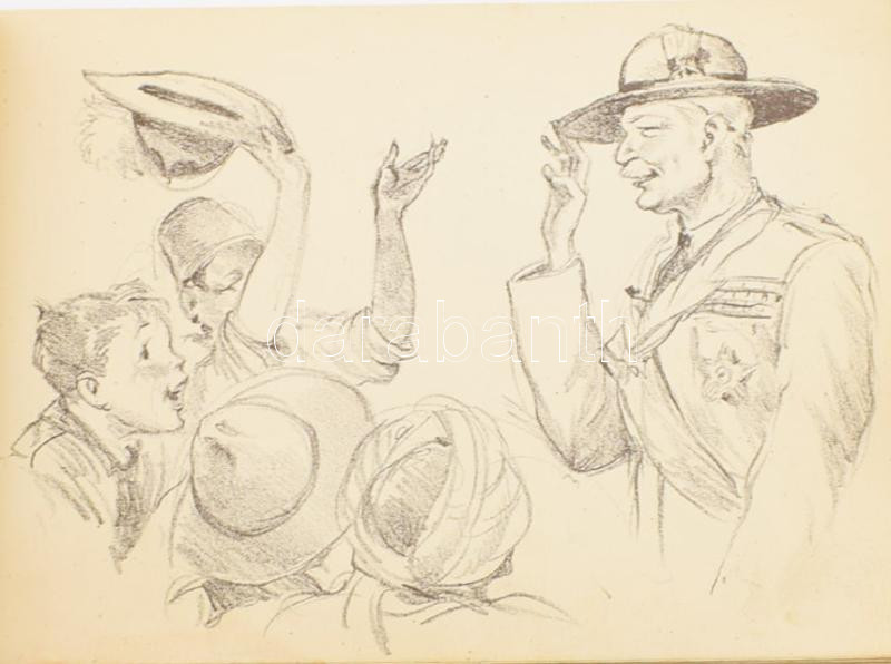 1933 Gödöllő, Jamboree Souvenir, Márton Lajos sokszorosított grafikáit tartalmazó 40 lapos füzet, ofszet, Magyar Földrajzi Intézet, kiadói papírkötésben, egyik lap kijár