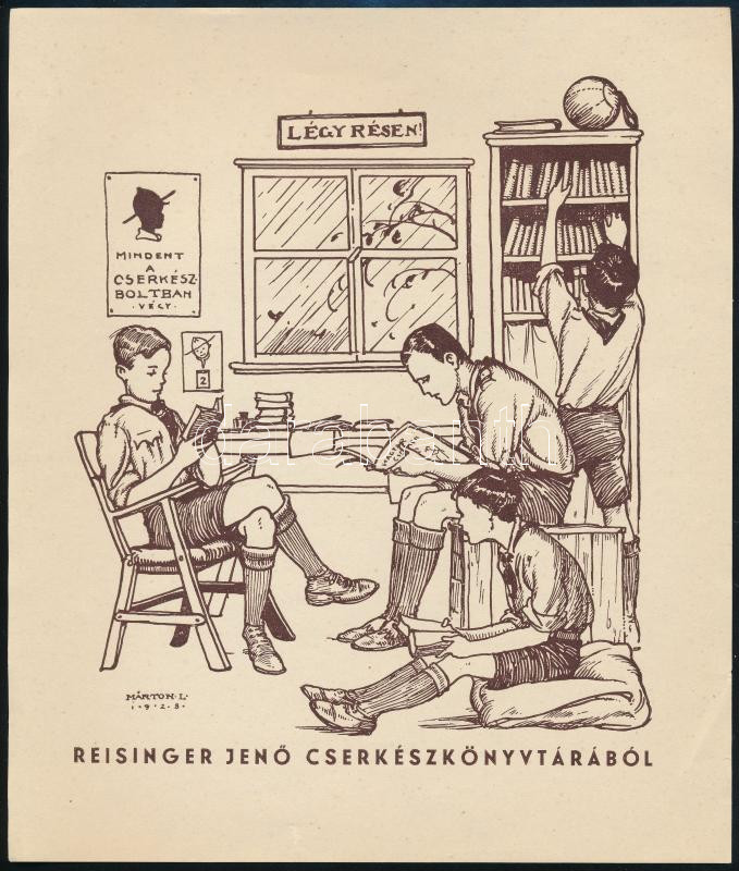 Márton Lajos (1891-1953): Reisinger Jenő cserkészkönyvtárából (ex libr... https://www.darabanth.com/de/484-Fernauktion/484.0/Kunst-Dokumente-andere-Sammelgebiete/Pfadfinder~1000006/Marton-Lajos-1891-1953-Reisinger-Jeno-cserkeszkonyvtarabol-ex-libris-1928-Klise-papC3~II3267964