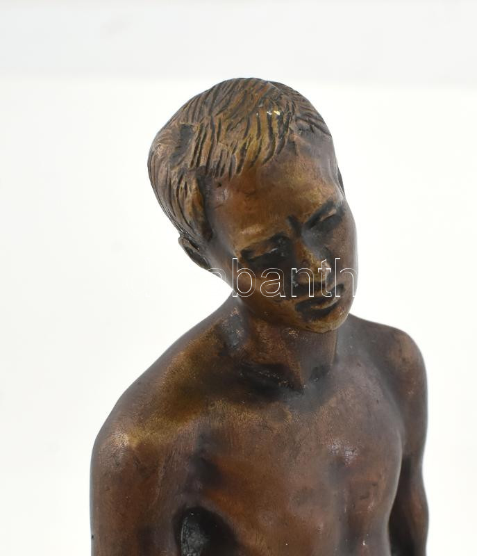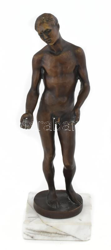 Martsa István (1912-1978): Férfi akt. Bronz, mészkő z talapzaton. Jelzés nélkül. 23 cm .