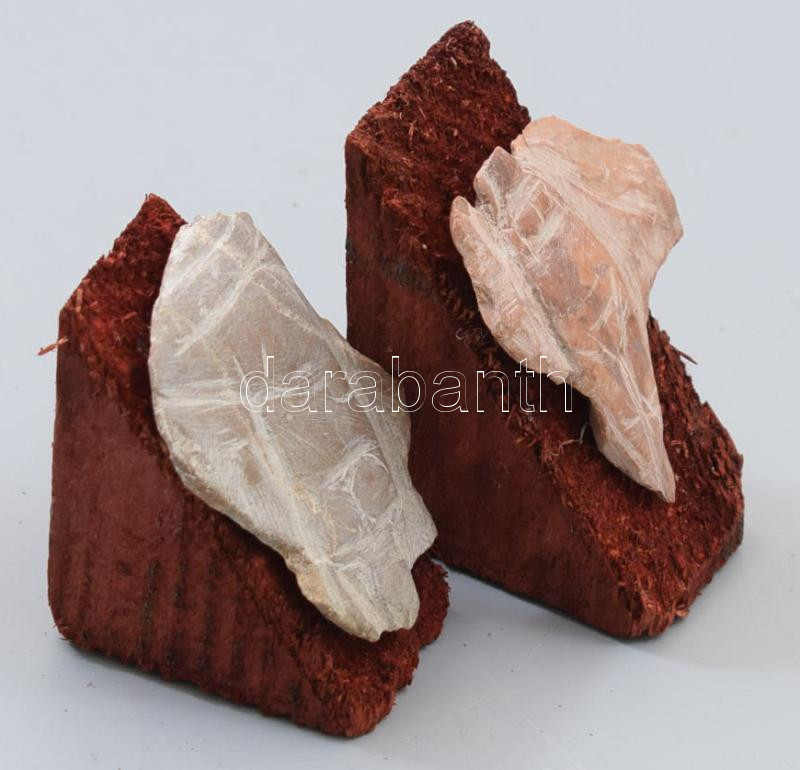 Nagy Sándor (1923-2017): 2 darab Idol. Faragott és vésett kő, fa talpazaton, jelzés nélkül, m: 7,5 cm alatt