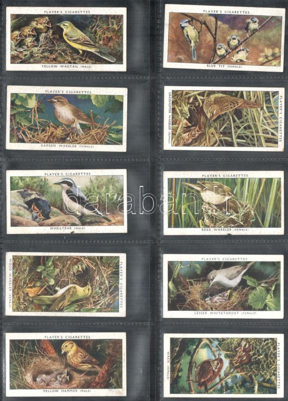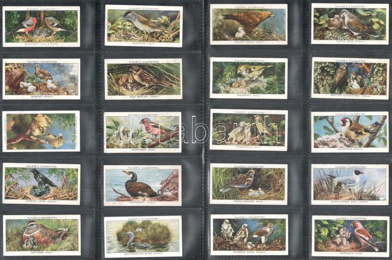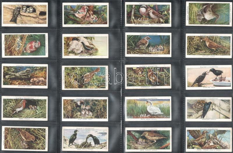 Player's Cigarettes angol cigaretta-gyűjtőképek, 50 db-os komplett sorozat (madarak és fiókáik), albumlapokon / English cigarette collectible pictures, complete series of 50 (Birds & Their Young), in album sheets