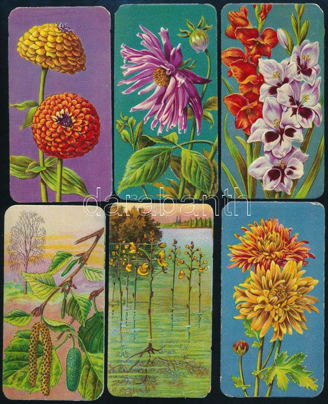 Stühmer-sorozat: "Kerti virágok", "A lomberdőben" és "Vizinövények" (6xklf) dombornyomott, lithográf kivitelű gyűjtőkártya. A sorozat 65., 99., 176., 177., 179. és 180. számú darabjai.
