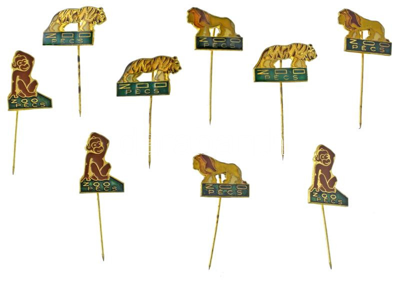 1980. "Zoo Pécs" (9db,3xklf) műgyantás fém állatkerti kitűzők T:AU