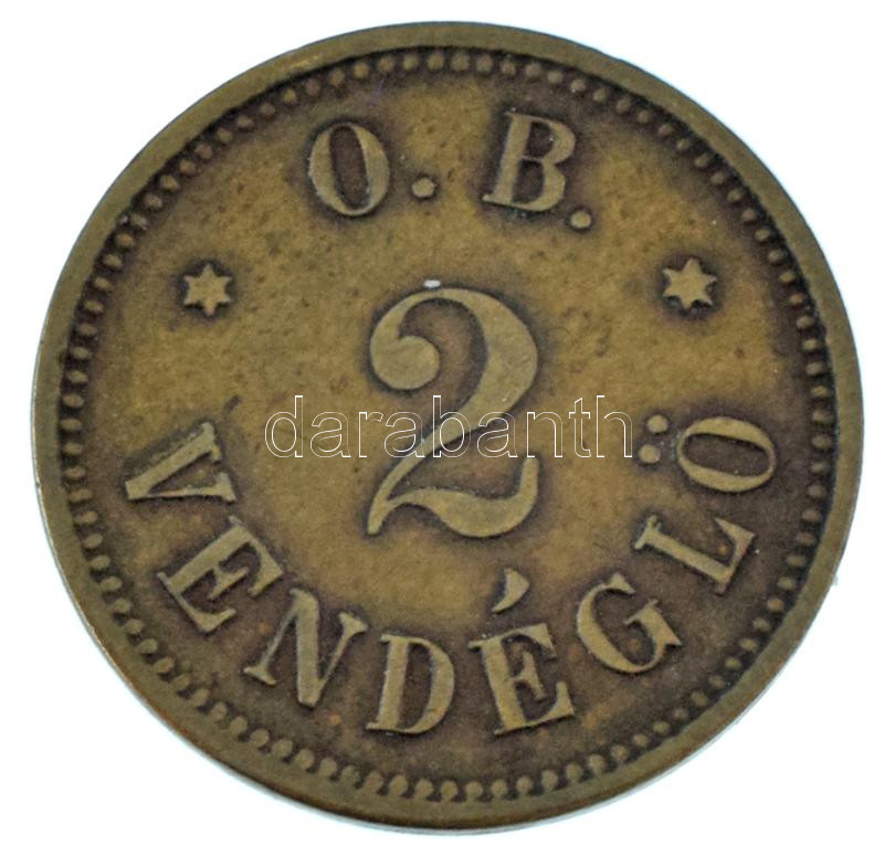 Ormosbánya ~1900 "O.B. Vendéglő" 2-es értékű bárcája (1,86g/... https://www.darabanth.com/de/484-Fernauktion/484.0/Numismatik/Notgeld-aus-Papier-und-Metall~500007/Ormosbanya-7E1900-OB-Vendeglo-2-es-erteku-barcaja-1-86g19mm-TXF~II3154090