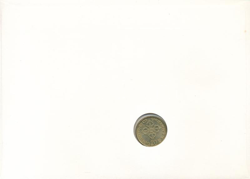 Bhután 1974. 20ch Cu-Al-Ni "FAO" forgalmi emlékérme felbélyegzett borítékban, bélyegzéssel, német nyelvű leírással T:AU Bhutan 1974. 20 Chetrums Cu-Al-Ni "FAO" circulating commemorative coin in envelope with stamp, cancellation and prospectus in German C:AU