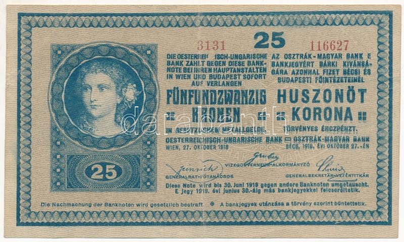 H... https://www.darabanth.com/de/484-Fernauktion/484.0/Numismatik/Ungarische-Banknoten~500008/1918-25K-3131-3-5mm-hullamos-hatlappal-TF-eros-papir3Cbr-3E-Hungary-1918-25-Korona-3131-~II3309406