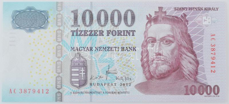 2012. 10.000Ft "AC 3879412" T:AU, sarokhajlás https://www.darabanth.com/de/484-Fernauktion/484.0/Numismatik/Ungarische-Banknoten~500008/2012-10000Ft-AC-3879412-TAU-sarokhajlas~II3272763