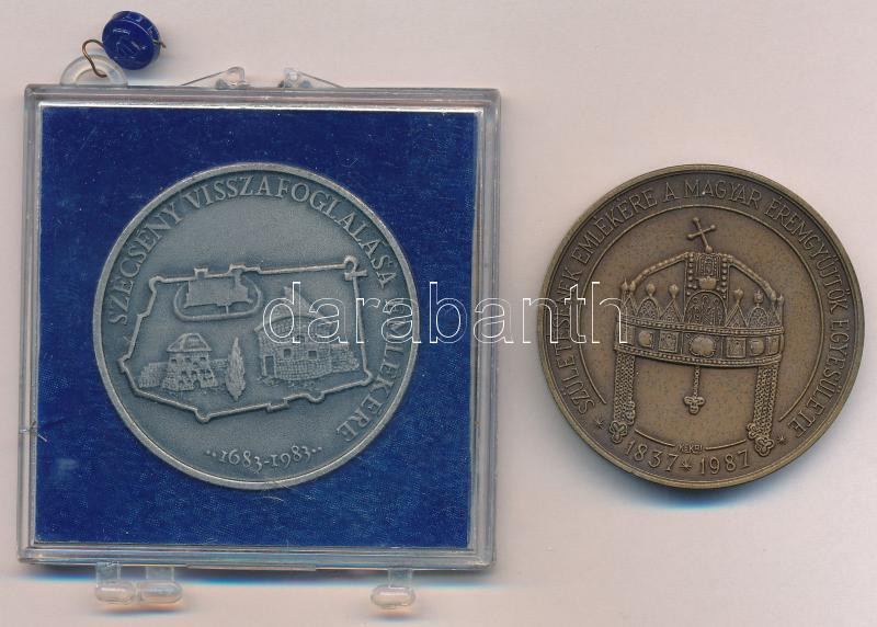 1983. "Sobieski János lengyel király / Szécsény visszafoglalása emlékére 1683-1983" kétoldalas, ezüstpatinázott bronz emlékérem sérült ÁPV tokban (42,5mm) + Kelemen Kristóf (1922-2001) 1987. "Elisabetha Regina Hungariae - Születésének emlékére a Magyar Éremgyűjtők Egyesülete 1837-1987" bronz emlékérem (43mm) T:UNC,AU