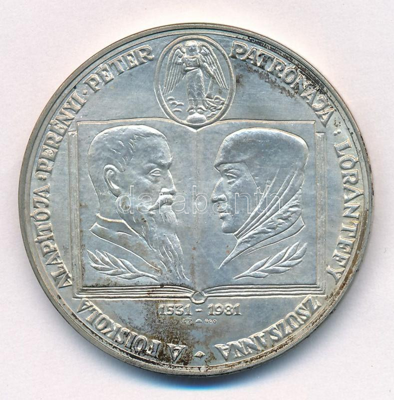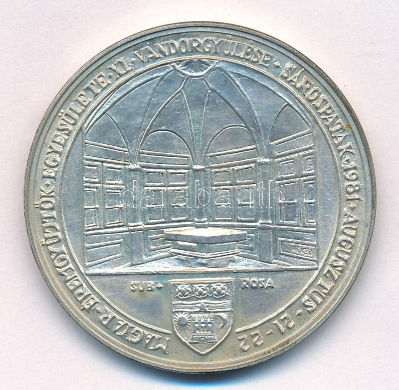 Kelemen Kristóf (1922-2001) 1981. "MÉE XI. Vándorgyűlése - Sárospatak / A főiskola alapítója: Perényi Péter - Patrónája: Lórántffy Zsuzsanna" Ag emlékérem (34,84g/0.640/42,5mm) T:AU patina