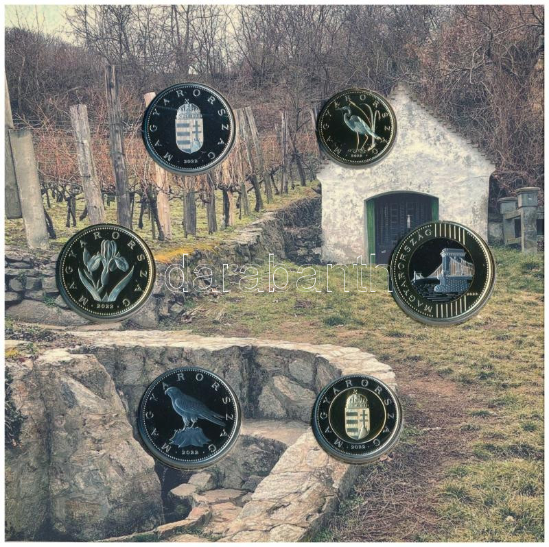 Beschreibung: 2022. 5Ft-200Ft (6xklf) forgalmi sor szettben + "Somlói borvidék" Cu-Ni-Zn proof emlékérem T:PP