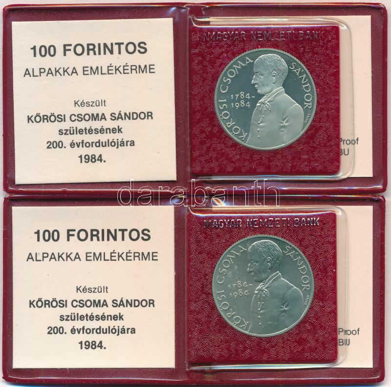 1984. 100Ft Cu-Ni-Zn "Kőrösi Csoma Sándor" (2xklf) eredeti m... https://www.darabanth.com/de/484-Fernauktion/484.0/Numismatik/Ungarische-Munzen-und-Munzen-mit-ungarischem-Munzzeichen~500009/1984-100Ft-Cu-Ni-Zn-3Cem3EKorosi-Csoma-Sandor3Cem3E-2xklf-eredeti-mubor-tokban-tanusitvan~II3276196