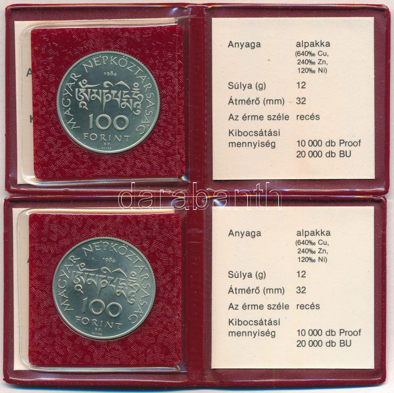 Beschreibung: 1984. 100Ft Cu-Ni-Zn "Kőrösi Csoma Sándor " (2xklf) eredeti műbőr tokban, tanúsítvánnyal T:BU,UNC (PP)