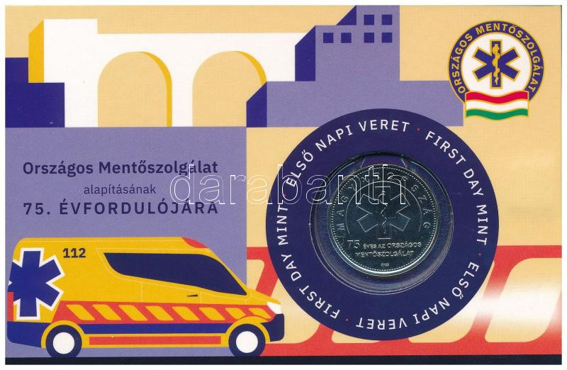 2023. 50Ft Cu-Ni "75 éves az Országos Mentőszolgálat" első n... https://www.darabanth.com/de/484-Fernauktion/484.0/Numismatik/Ungarische-Munzen-und-Munzen-mit-ungarischem-Munzzeichen~500009/2023-50Ft-Cu-Ni-3Cem3E75-eves-az-Orszagos-Mentoszolgalat3Cem3E-elso-napi-veret-szamozott-emle~II3242763