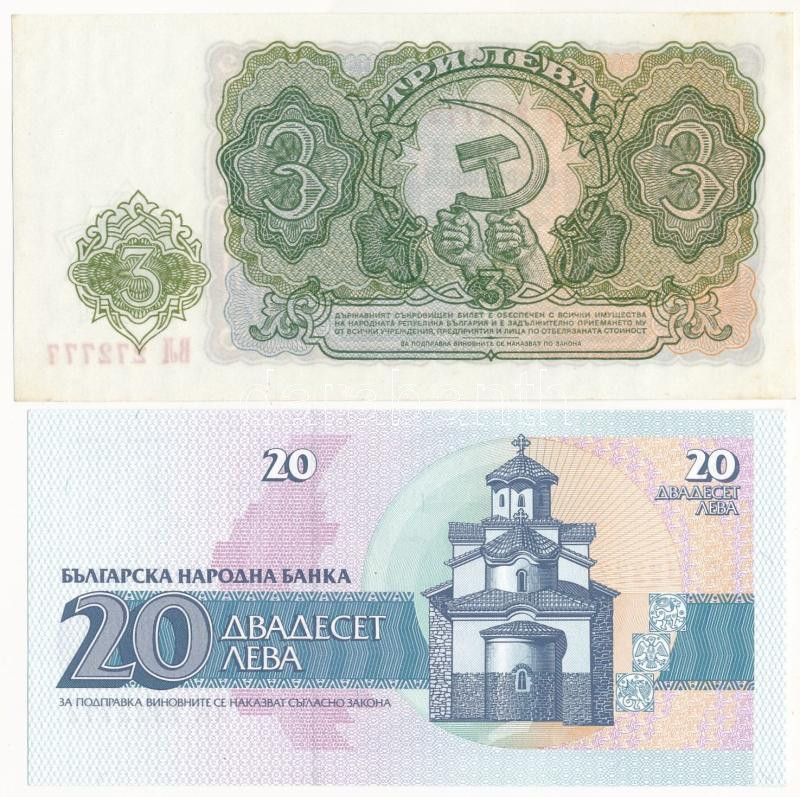 Bulgaria 1951. 3 Leva "272777" + 1991. 20 Leva "AK 7322772" C:UNC,AU