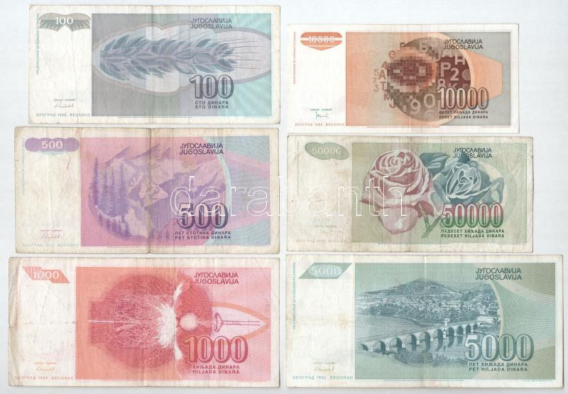 Jugoszlávia 1992. 100D - 50.000D (6xklf) T:F, pici szakadás