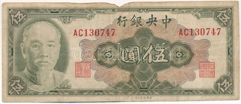 Chi... https://www.darabanth.com/de/484-Fernauktion/484.0/Numismatik/Weltweit-Banknoten~500014/Kina-1945-5Y-Central-Bank-of-China-TF-VG-anyaghiany-China-1945-5-Yuan-Central-Bank-of-China~II3251224