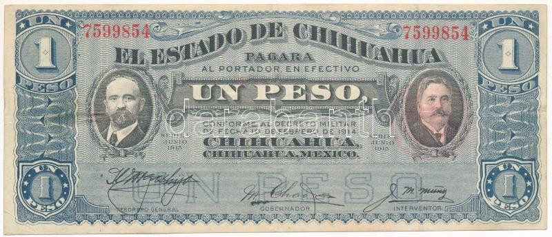 Mexikó / Forradalom / Chihuahua 1915. 1P hátoldalán piros, kör alakú felülbélyegzéssel és dátummal T:F,VG folt