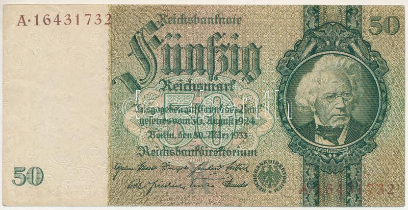 Beschreibung: Német Harmadik Birodalom 1933. 50M T:F erős papír German Third Reich 1933. 50 Mark C:F strong paper Krause P#182.a