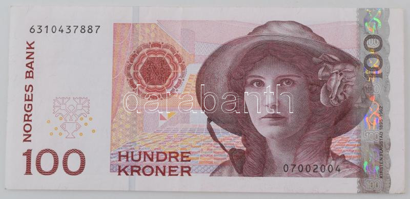 Norway 1995. 100 Kroner C:F fine p... https://www.darabanth.com/de/484-Fernauktion/484.0/Numismatik/Weltweit-Banknoten~500014/Norvegia-1995-100K-TF-szep-papir-Norway-1995-100-Kroner-CF-fine-paper-Karuse-P2347~II3216379