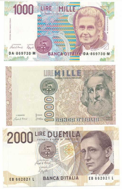 Beschreibung: Olaszország 1982. 1000L + 1990. 1000L + 2000L T:AU-F Italy 1982. 1000 Lire + 1990. 1000 Lire + 2000 Lire C:AU-F Krause P#115, P#109, P#114