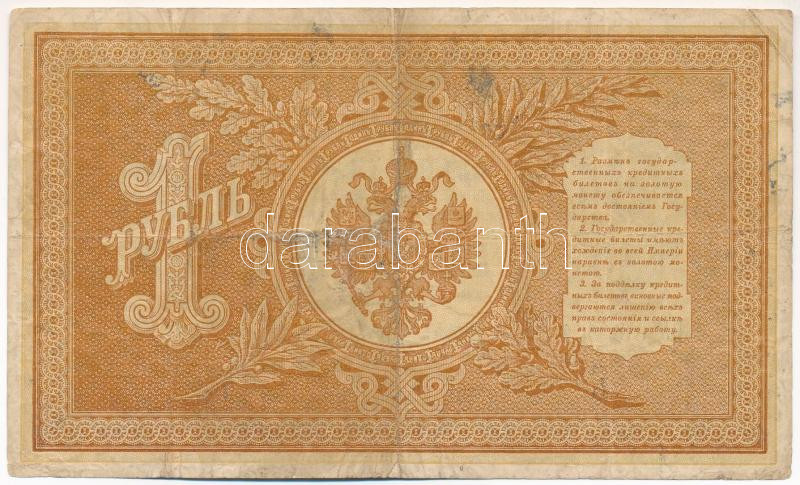 Orosz Birodalom 1898-1903. (1898) 1R Szign.: Pleske T:F, középső hajtás mentén elvékonyodott papír