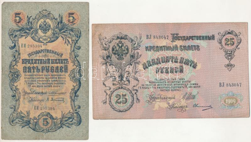 Orosz Birodalom 1912-1917. (1909) 25R Szign.: Shipov + 1912-1917. (190... https://www.darabanth.com/de/484-Fernauktion/484.0/Numismatik/Weltweit-Banknoten~500014/Orosz-Birodalom-1912-1917-1909-25R-Szign-Shipov-plus-1912-1917-1909-5R-Szign-Konshin-TF-pic~II3275288