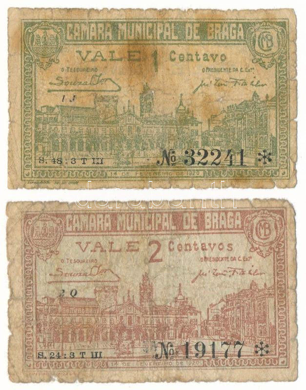 Portugal / Braga 1920. 1 Centavo + 2 Centavos C:G