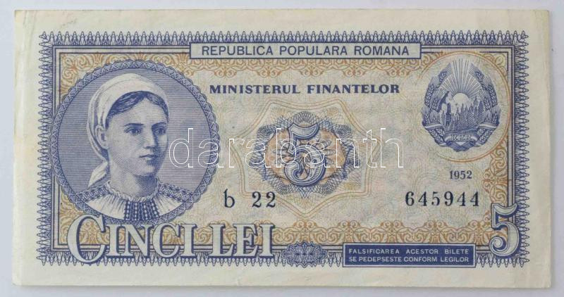 Romania 1952. 5 Lei C:F nice paper