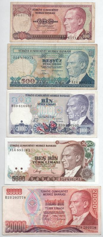 Turkey ND(1983-1990) 100 Lira - 20.000 Lira (5xdiff) C:F fine paper -VG