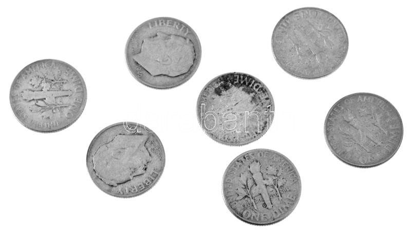 Amerikai Egyesült Államok 1946-1964. 10c Ag "Roosevelt" (7xklf) T:XF,VF patina