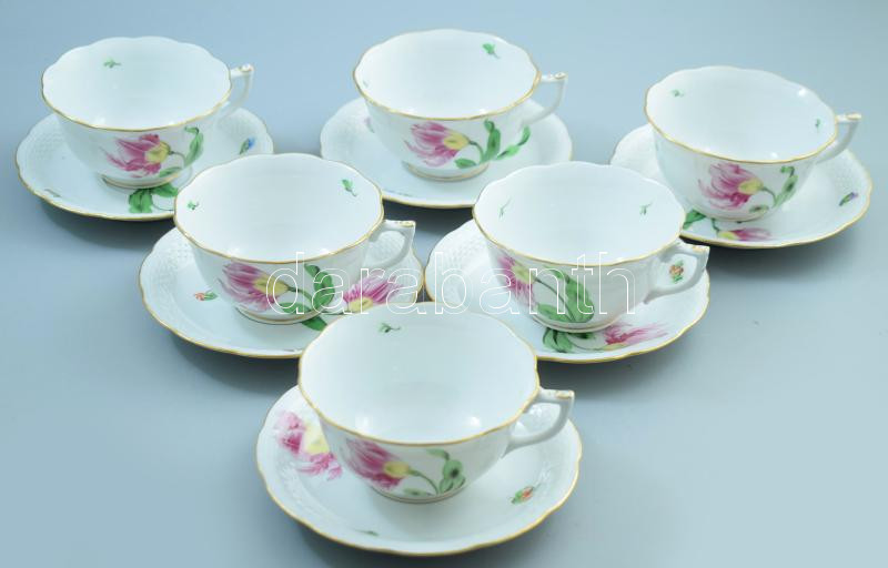 Beschreibung: Herendi Kitty mintás 6 csésze alátéttel készlet. Jelzett, hibátlan, d: 15,5 cm