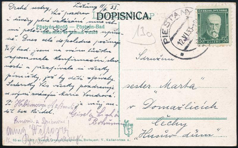 1933 Pöstyén-fürdő, Pistyan, Kúpele Piestany; fürdő és szálloda. Vasút... https://www.darabanth.com/de/485-Fernauktion/485.0/Ansichtskarten/Slowakei~1500007/1933-Postyen-furdo-Pistyan-Kupele-Piestany-furdo-es-szalloda-Vasuti-levelezolaparusitas-65~II3077620