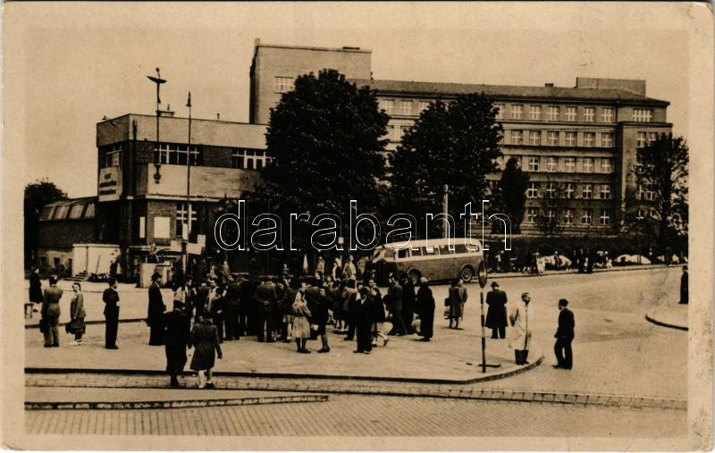1947 Pozsony, Pressburg, Bratislava; Financné úrady, Dom umelcov / Pénzügyi hatóságok, Művészet Háza, autóbusz / Financial offices, House of Arts, autobus (fl)
