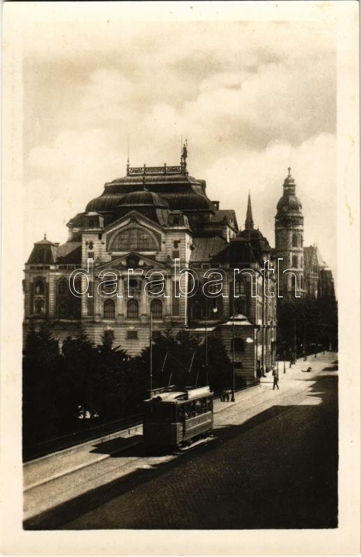 Beschreibung: Kassa, Kosice; színház és dóm, villamos. Fried kiadása / theater, cathedral, tram