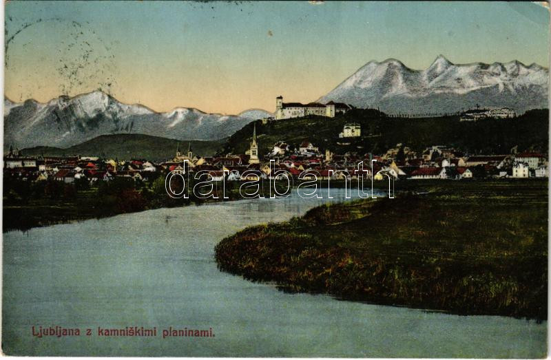Ljubljana, Laibach; z kaniskimi planinami / Steiner Alpe (EK) https://www.darabanth.com/de/485-Fernauktion/485.0/Ansichtskarten/Slowenien~1500099/Ljubljana-Laibach-z-kaniskimi-planinami-Steiner-Alpe-EK~II3098289