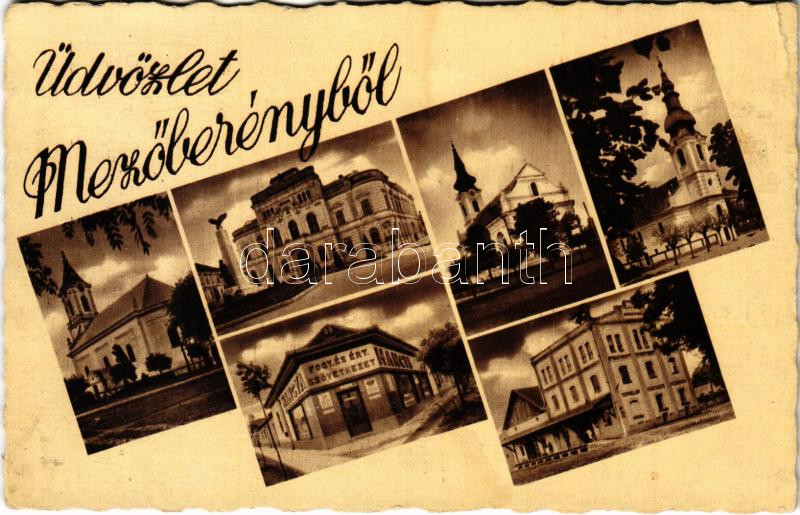 1942 Mezőberény, Református és evangélikus templom, Községháza, emlékm... https://www.darabanth.com/de/485-Fernauktion/485.0/Ansichtskarten/Ungarn~1500005/1942-Mezobereny-Reformatus-es-evangelikus-templom-Kozseghaza-emlekmu-Hangya-szovetkezet~II3093663