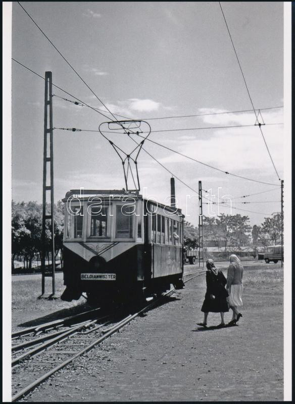 Beschreibung: cca 1959 Villamos Nyíregyházán, 1 db modern nagyítás, jelzés nélkül, 21x15 cm